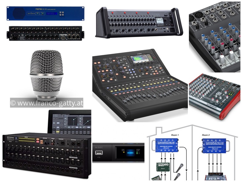 Midas, Yamaha, EV, RCF, Dynacord, LAB, Shure, AKG, Sennheiser, Audio-Technica, LD Systems, uvm...